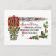 "Que los saludos de Navidad y los deseos más verdaderos Recuerda que los amigos piensan muy bien de ti". El mistletoe artesanalmente arreglado y sus bayas blancas apoyan la 'M' inicial del verso que también está bordeado por hojas de acanthus, hojas huecas y bayas rojas en una vintage postal navideña de 1913.