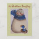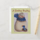 Postal Festiva Primitivo del país Snowman con pájaro azul