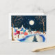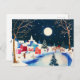 Postal Festiva Pueblo nevado de invierno azul festivo