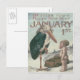 Postal Festiva Querubín ángel cigüeña de año nuevo bebé