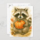Bring a smile to your fall season with this adorable Thanksgiving postcard featuring a cute raccoon holding a pumpkin.