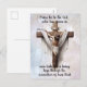 A serene, light‑filled depiction of Christ on the cross, surrounded by a soft bokeh glow that emphasizes peace, sacrifice, and resurrection hope. Draped white cloth and gentle illumination create a sense of purity and renewal, echoing the promise of new life celebrated in the Easter message.