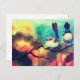 Postal Festiva Rama de la naturaleza pintada Aves metálicas