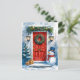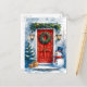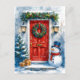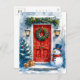 Postal Festiva Red Door with Snowman Cozy Christmas Postcard