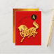 Composition with golden traditional Chinese paper cut-out of a horse + small modern lettering for Year of the Horse 2026 and Chinese Horse Ideogram Symbol onto a small black circle. Design on vertical standard greeting card with golden textured paper (printed image) in back. Matching greeting card with texts to personalize, invitation and more. Perfect for Chinese New Year of the Horse 2026 or birthday (people born in Horse Year).
