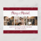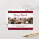 Red photo newlywed holiday postcard featuring snowflakes and a watercolor painting of poinsettia, connifer tree branches, holly and red berries. Easily personalize this festive newlywed holiday postcard with your photos, and text.