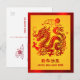 Postal Festiva Relieve metalizado rojo dragón del año nuevo lunar