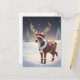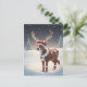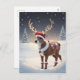 Una postal de Navidades en blanco con un reno lindo usando un sombrero de Santa.
