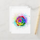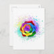 Rosa grande y floreciente con pétalos de arco iris sobre fondo blanco, pintado con salpicaduras de pintura colorida y brillante. 3.ª
