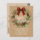 Postal Festiva Rústico Holly Wreath Red Black Checkup Bow