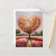 Una pintura altamente simbólica y texturizada con un árbol central con ramas desnudas, sus hojas reemplazadas por una multitud de corazones rojos, blancos y rosados. El árbol se posiciona contra un enorme y brillante corazón dorado que llena el cielo, creando un telón de fondo poderoso y caprichoso. El primer plano es un paisaje de bandas abstractas y horizontales en varios tonos de rosa y rojo, que se asemejan a un campo cultivado. Un sendero de baldosas doradas conduce desde el fondo del lienzo hasta la base del árbol. El estilo general es rico en textura y simbolismo, evocando temas de amor, afecto y el viaje al corazón.