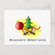 Postal Festiva Saludos de temporada ~ Pelota roja, campanas y árb