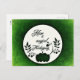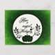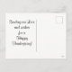 En esta postal se muestra la imagen de una calabaza, hojas y bayas en verde, con el mensaje "Ten un Acción de Gracias mágico". En la parte trasera de la tarjeta se lee: "¡Enviando nuestro amor y deseos de un feliz día de Acción de Gracias!", ¡una gran manera de enviar saludos de Acción de Gracias a la familia y amigos!
