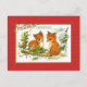 Postal Festiva Saludos navideños Foxes Reproducción de cosecha