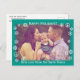 Postal Festiva Saludos Navideños Verde con nieve y signos de paz