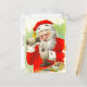 Vintage ilustracion navideño de Santa Claus hablando por un teléfono antiguo.