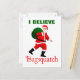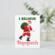 ¿Crees en Santa Claus? Una imagen de Santa Claus a lo largo de las líneas de Sasquatch de la película Patterson-Gimlin. El texto que dice "Bagsquatch" también aparece junto con el texto del personalizable que dice "CREO". Bagsquatch, alias Bigbag, es una figura esquiva, nocturna generalmente vista sólo una noche a fines de diciembre. A menudo se ve a Bagsquatch atravesando los tejados y, ocasionalmente, en las salas de estar, y a menudo se las encuentra muy cerca de caribú volador. Bagsquatch es fácilmente identificable por su brillante pelicula roja y blanca con guarnecido negro y icónico "Ho! ¡Ho! ¡Vaya!" vocalizaciones.