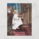 Es hora de celebrar las fiestas. Esta vintage impresión navideña representa a Santa Claus esperando que una linda niña se vaya a la cama para poder bajar por la chimenea y poner regalos debajo del árbol de Navidad.