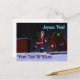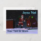 Santa Claus (Père Noël) se ve en el tejado de una casa después de entregar regalos. Las luces rojas y verdes de navegación de su trineo se reflejan en la nieve de la azotea, y la placa de matrícula personal de Santa Polo Norte es visible. El texto que dice "Joyeux Noё l" también aparece junto con un lugar para tu propio texto.