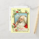 Vintage imagen de Navidad de Papá Noel fumando una pipa y enviando saludos de Navidad. Está enmarcado con hojas y bayas.