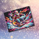 Postal Festiva Santa snowboard Colores psicodélicos
