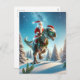 Postal Festiva Santa sobre un dinosaurio, Navidades