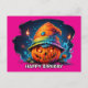 Postal Festiva scray jackolantern con gorra de cumpleaños pysched