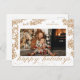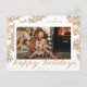 Esta elegante postal de vacaciones cuenta con un borde dibujado a mano con follaje dorado de invierno y un florido saludo de guion con la lectura de "vacaciones felices", que acentúa una foto de un solo personalizable para un ambiente clásico tradicional de vacaciones. La parte posterior se configura como una postal para un envío fácil.