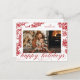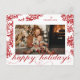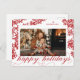 Esta elegante postal de vacaciones cuenta con un borde dibujado a mano con bayas rojas y follaje de invierno y un florido saludo de guion que dice "vacaciones felices" acentando una foto de un solo personalizable para un ambiente tradicional clásico de vacaciones. La parte posterior se configura como una postal para un envío fácil.