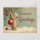 Send a touch of holiday cheer with this charming postcard featuring a curious kitten reaching for a bright red ornament beneath a snowy pine branch. The vintage-style background and soft blue sky evoke a nostalgic winter atmosphere, while the playful scene adds warmth and whimsy. The front design includes the festive message “Season’s Greetings” in a decorative red font, and a dedicated block allows you to add your own verse, greeting, or personal message (perfect for customizing with names, inside jokes, or heartfelt wishes). Whether you're mailing it to loved ones or including it with a gift, this postcard blends classic charm with personal flair and helps us donate to animal charities. Find more animal-themed cards and stationery in our collection, Paws, Wings and Winter Things - A Holiday Card Suite.