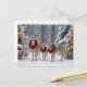 Cute deer family in the snow Season's Greetings Christmas holiday. They wear wreaths of poinsettias and with decorated lighted trees.