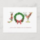 Navidades de vacaciones de invierno de estilo tradicional moderno no tarjeta de foto con un sencillo guion de estilo JOY floral con bayas rojas, flores de abeto y un arco de coral rojo. ++++++++++ Personalízalo con tu texto en ambos lados!