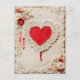 Obra vintage de arte chic y chic, con un corazón rojo sobre encajes y texturas antiguas, que evocan amor, romance y nostalgia. Perfecto para San Valentín y temas románticos.