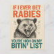 Que todos sepan dónde están con este diseño salvaje y sin remordimientos. Con un animal salvaje y de boca abierta (claramente no de humor) y la audaz frase "Si alguna vez tengo rabia, estás en lo más alto de mi lista de bitin", este gráfico no me da puñetazos. Perfecto para los fanáticos del humor negro, de los golpes sarcásticos, o para cualquiera a quien le guste su moda feroz y divertida. El llamativo rojo y las verde azuladas letras combinadas con el ilustracion de estilo vintage hacen que este diseño sea retro y rebelde. Ya sea que esté teniendo uno de esos días, o que simplemente quiera que la gente siga adivinando, este artículo es para usted. Ideal para el desgaste informal, para el inicio de una conversación o para el amigo con el más agudo ingenio en la habitación. Bonus: el pequeño detalle de la cinta añade un toque de ironía o sutil estilo de conciencia—tu elección. Usa fuerte, hazlo con orgullo y no olvides: la lista de bocados no tiene piedad.