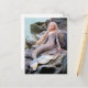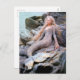 Una sirena sentada con gracia en las rocas junto al océano. La imagen capta su belleza aguda en el fondo del vasto mar, resaltando la armonía entre la criatura mítica y el medio marino.