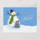 Postal Festiva Snowman y Cat | Dejen que las Navidades de nieve p