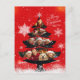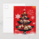The stylish Christmas tree featured on the holiday postcard stands out against a vibrant red snowy background. This customizable card allows you to add your own photos, making it a perfect option for spreading joy to your family and friends.