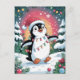 Postal Festiva Snowy Winter Cute Penguin in Santa Hat Christmas