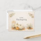 This beautifully understated Thanksgiving design features a soft neutral color palette with a calm, rustic feel. Cream and pale orange pumpkins rest among golden wheat, cotton blossoms, pinecones, acorns, and muted green foliage, all set against a lightly textured parchment background. The simple “Happy Thanksgiving” lettering is centered above the harvest arrangement, creating a clean and balanced composition. Gentle shades of beige, sage, warm brown, and soft orange give the artwork an elegant farmhouse aesthetic. Perfect for celebrating the season of gratitude, this design captures the warmth of autumn in a refined, minimalist harvest style.