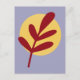 Una silueta de un tallo de planta roja con un sol amarillo sobre un fondo de lavanda claro.