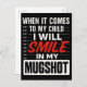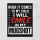Audaz y gracioso diseño de la declaración de los padres con una imagen falsa con la frase "Cuando se trata de mi hijo, sonreiré en mi imagen de cámara". Perfecto para padres que orgullosamente defienden a sus hijos con humor.