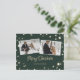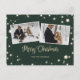 Navidades mágicos fototarjeta con copos de nieve y estrellas. Crea una hermosa tarjeta postal para Navidades de fotos verdes para tu familia y amigos. Personaliza fácilmente esta tarjeta postal de Navidades estrellados con tu nombre familiar, 3 fotos y un mensaje.