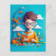 Un niño escribe con pasión, rodeado de libros e historias que esperan desarrollarse. Una visión digital de ensueño de convertirse en autor.