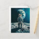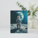 A tabby cat stands proudly on the moon wearing a white suit with gray accents. Behind it, Earth glows against a starry sky, creating a bold lunar portrait.