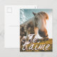 Te amo con caballo mirado y saludos manuscritos en el reverso de la tarjeta. El espacio restante está disponible para su uso gratuito.