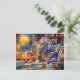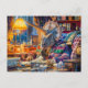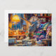 Postal Festiva Tejiendo triceratops en un acogedor sillón