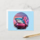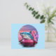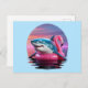 ¡Envíe saludos desde unas vacaciones que no sean ordinarias con esta graciosa postal de vacaciones! El diseño presenta un tiburón chillón de mancha hilarante en un flotador de piscina flamingo rosa brillante, frente a una puesta de sol de una onda de vaporización increíblemente bella. Los vivos tonos rosa y violeta le dan un ambiente fresco y retro, lo que hace que sea la manera perfecta de decirle "desearía estar aquí" a un amigo con un gran sentido del humor. La parte posterior está lista para tu mensaje ingenioso, dirección y sello. Es la mejor postal para cualquiera que ame tiburones, flamencos y una buena risa.