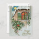 Esta es una postal navideña vintage de una casa en tiempo de Navidad.