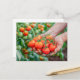 Hermoso acercamiento de tomates de cerezo recién recolectados en la vid, en manos de una vibrante y rústica granja-a-mesa de fotografía.