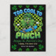 Ditch the pinches and grab the vibe! This ultra-fresh St. Patrick’s Day design features a smiling, skateboarding shamrock rocking a green cap, sneakers, and a cheeky grin – all set against a bold green-and-black checkerboard background. The iconic phrase "TOO COOL TO PINCH" pops in 3D bubble letters (blue on top, green on bottom), making it the perfect statement for anyone who hates getting pinched on March 17th!